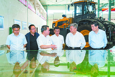 孫東生詳細了解了農(nóng)機公司的生產(chǎn)經(jīng)營狀況、技術(shù)創(chuàng)新能力、市場布局及發(fā)展規(guī)劃,實地察看了拖拉機和甘蔗收獲機等產(chǎn)品,并與鄭津、朱斌強進行了深入交流。孫東生對農(nóng)機公司在農(nóng)業(yè)機械領域取得的成就給予了充分肯定,他指出,柳工在技術(shù)研發(fā)、市場開拓、社會責任履行等方面展現(xiàn)了良好的示范作用,要繼續(xù)堅持創(chuàng)新驅(qū)動,突破關鍵核心技術(shù),增強自主創(chuàng)新能力,推動農(nóng)機行業(yè)高質(zhì)量發(fā)展。同時,柳工要一體推進產(chǎn)學研發(fā)展,重點關注和了解制約農(nóng)業(yè)科技、機械、人才等方面高質(zhì)量發(fā)展的瓶頸問題,如CVT變速箱、精密傳感器等高端農(nóng)機核心零部件的國產(chǎn)化率情況,優(yōu)秀人才引留等。